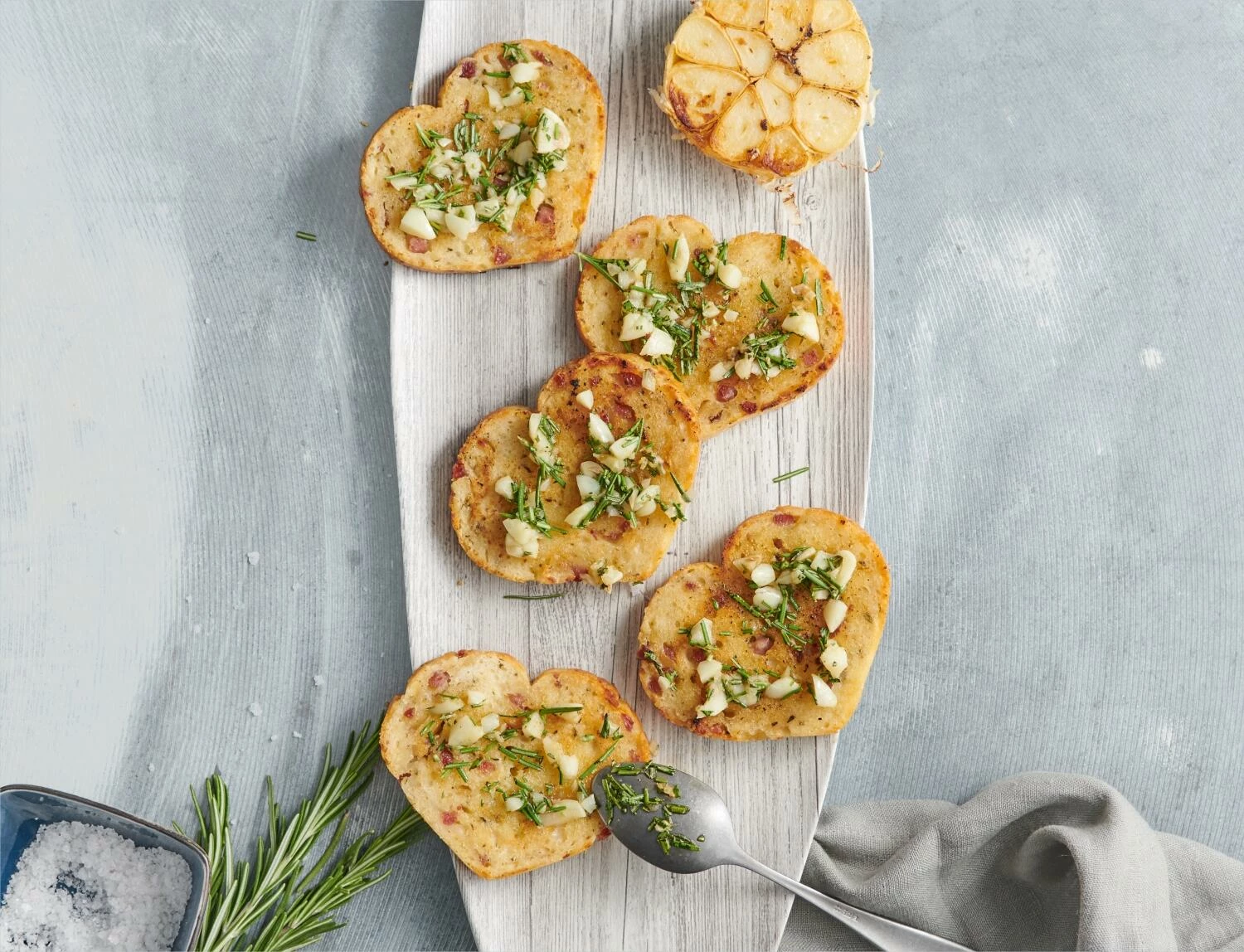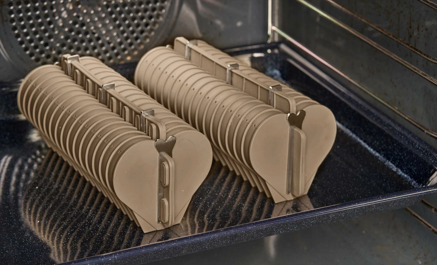 Das Praktische an der Backform ist zudem, dass beim Backen immer eine Rille aller 1 cm entsteht. So schneiden Sie das fertige Brot ganz einfach in 20 gleichmässige Scheiben mit einem Durchmesser von 9,5 cm. Perfekte herzförmige Häppchen für die nächste Party.