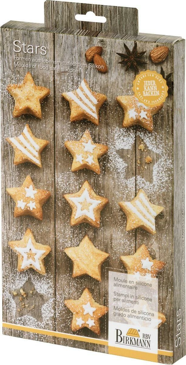 Birkmann Backform Stars aus Silikon, klein. Backform mit 15 Sternen-Motiven.