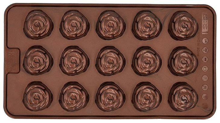 Birkmann Pralinenform Rose. Die Silikonform für 30 Rosenpralinen. Aus lebensmittelechtem Silikon und mit Rezeptheft.