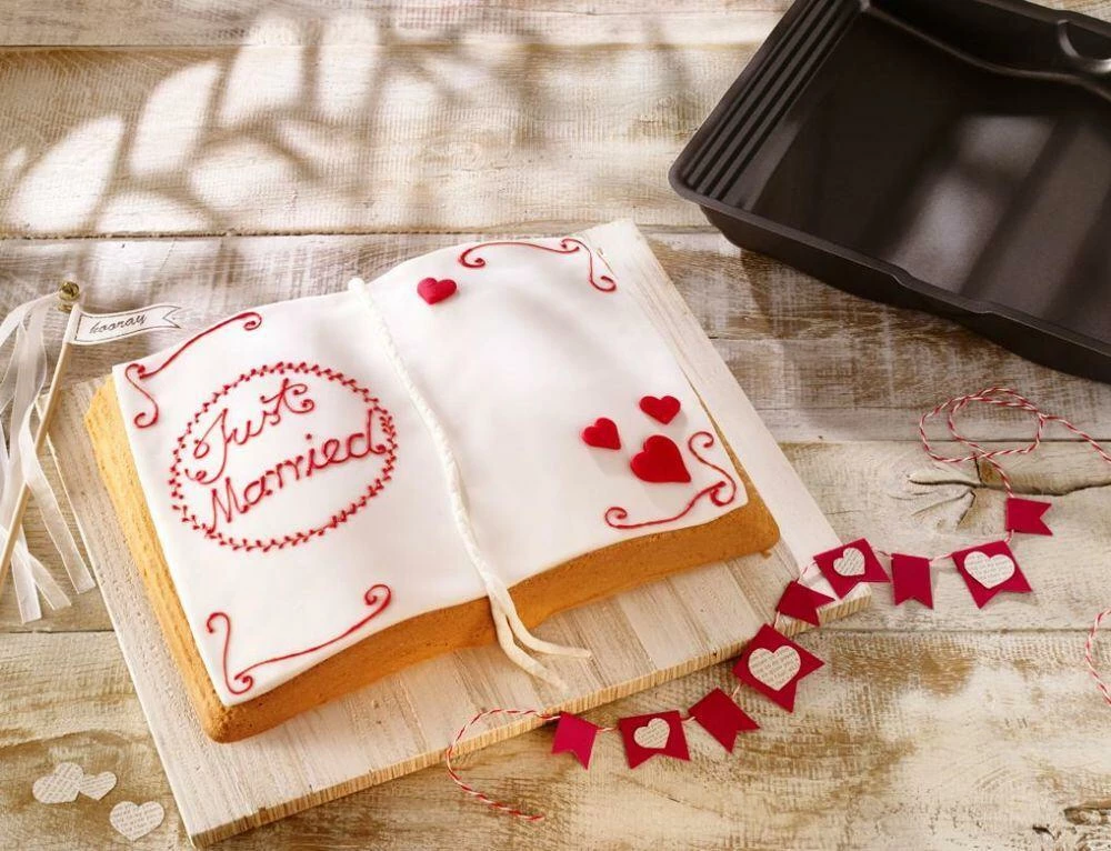 Birkmann Vollbackform Buch. Mit dieser Vollbackform wird Kuchen mit Buch-Motiv in 3D gebacken.
