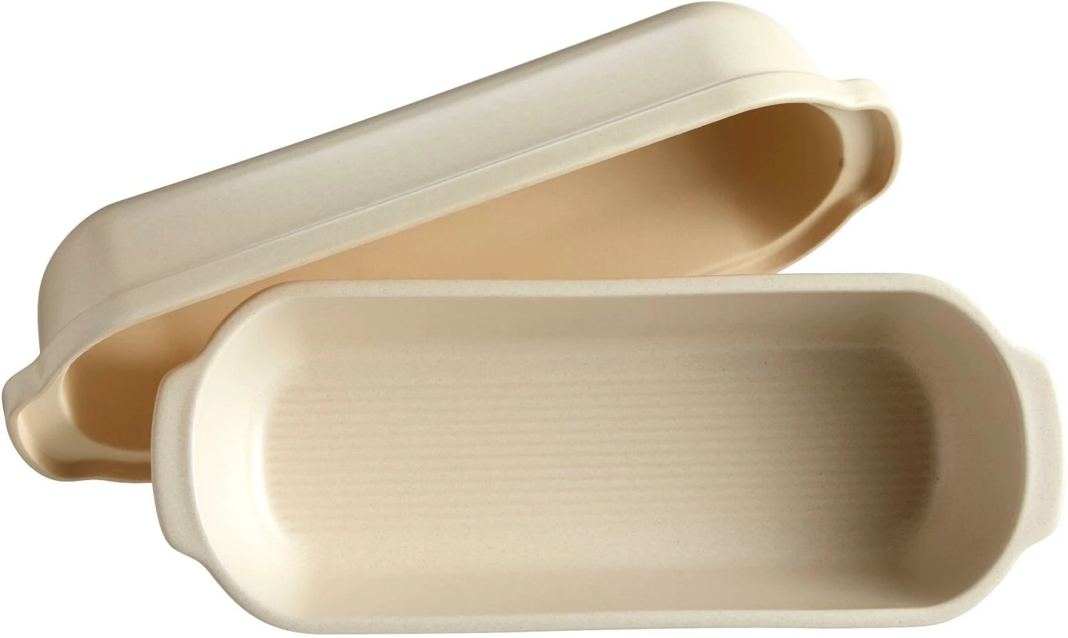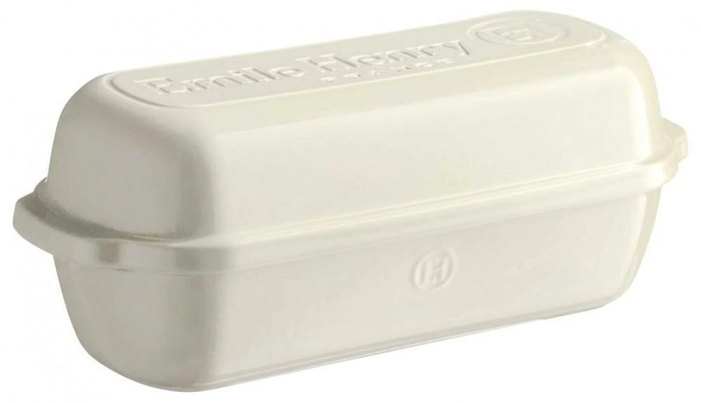 Emile Henry Kasten-Brotbackform in creme. Die hochresistente HR® Ofenkeramik lässt Kuchen, Brot oder Pastete gleichmäßig durchgaren. Servieren Sie sie gleich direkt aus der Form!