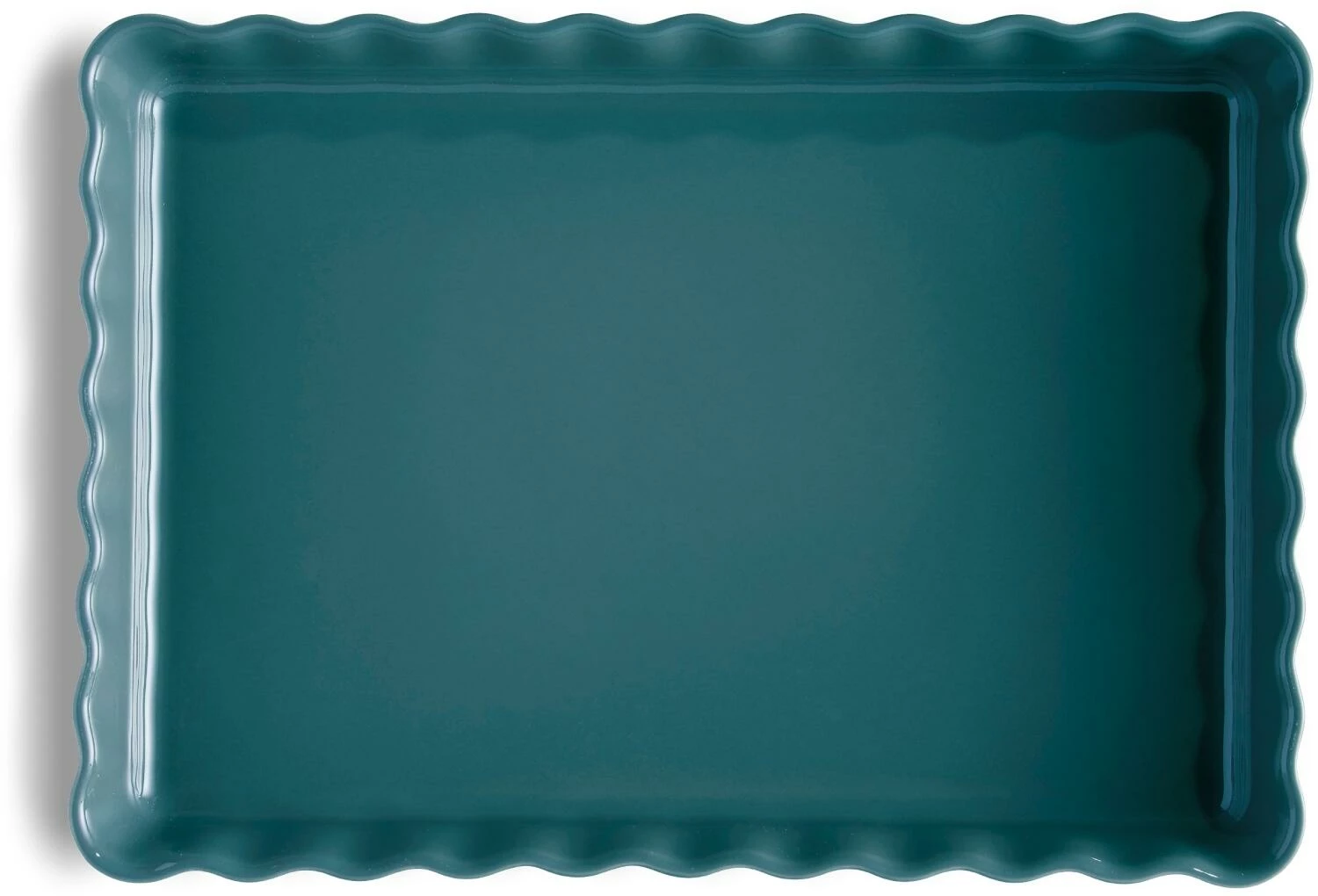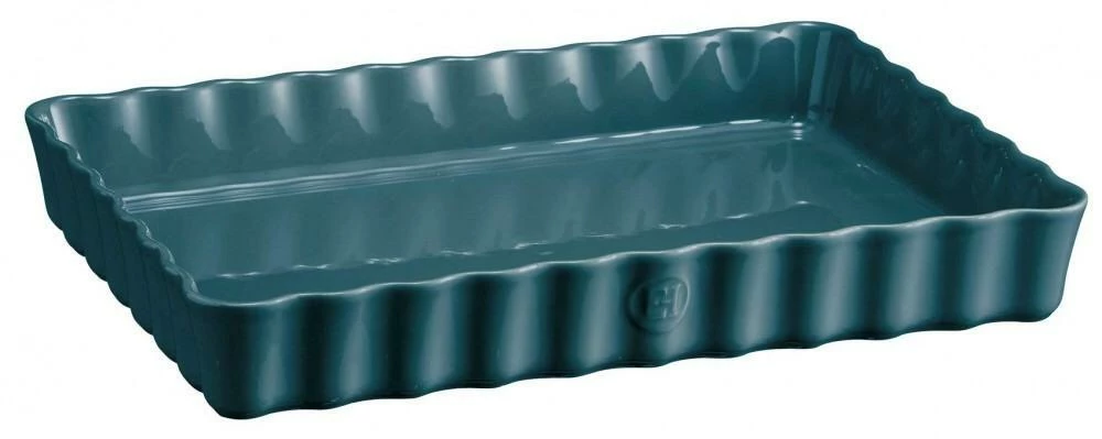 Emile Henry Kuchenform rechteckig in feu doux. In der breiten Keramikform lassen sich neben saftigen Kuchen auch knusprige Aufläufe, Gratins, Quiches und Tartes zubereiten.
