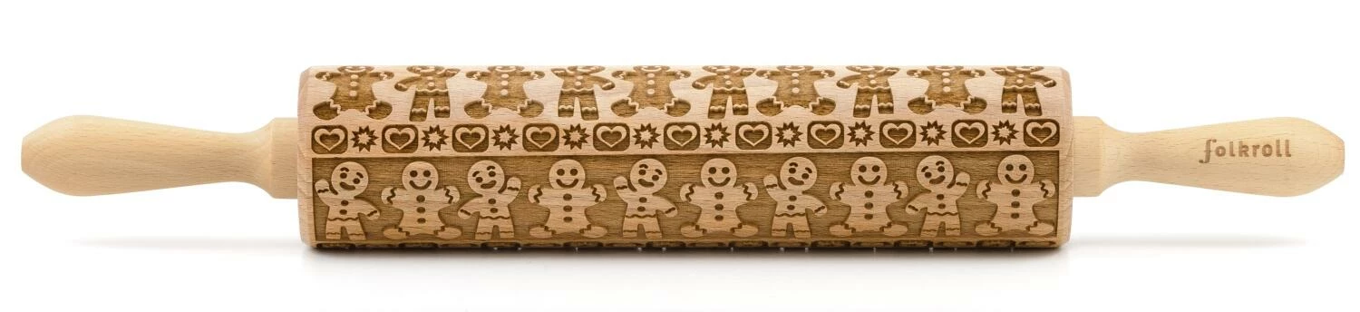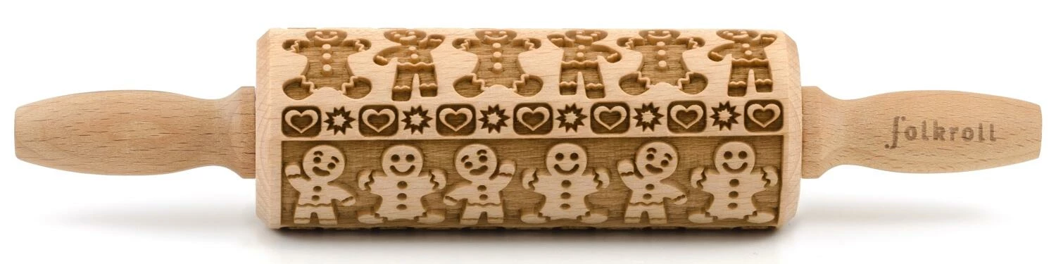 Folkroll Teigrolle Lebkuchenmann. Mehr als das klassische Nudelholz, nämlich eine Teigrolle mit tollen Mustern und Motiven in 3D-Optik. In 2 Größen erhältlich.
