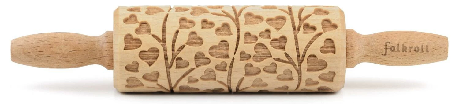 Folkroll Teigrolle Spring Hearts. Mehr als das klassische Nudelholz, nämlich eine Teigrolle mit tollen Mustern und Motiven in 3D-Optik. In 2 Größen erhältlich.