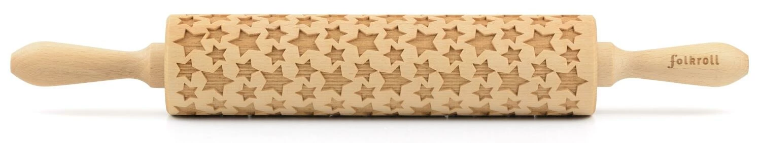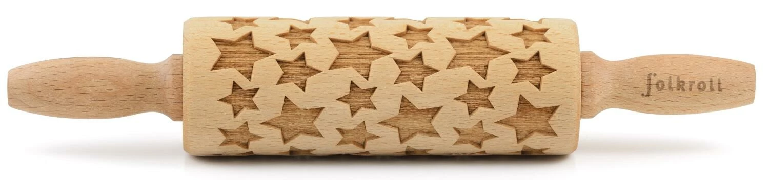 Folkroll Teigrolle Sterne. Mehr als das klassische Nudelholz, nämlich eine Teigrolle mit tollen Mustern und Motiven in 3D-Optik. In 2 Größen erhältlich.