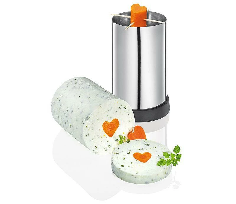 Mit Füllungseinsatz, Verwendung ohne Füllungseinsatz für komplett runde Terrinen. Verwendung mit Füllungseinsatz für Terrinen mit einem Loch in der Mitte, zum Füllen oder Dekorieren mit einer passenden Sauce oder Creme.