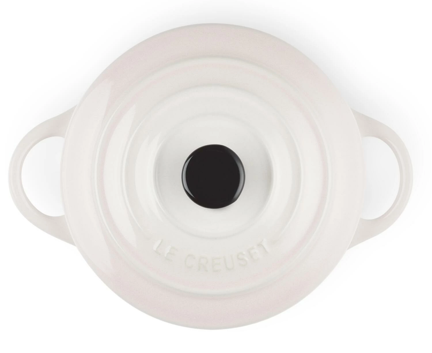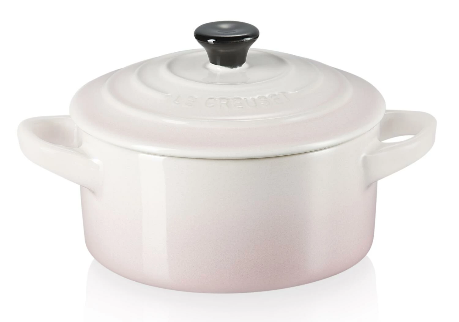 Le Creuset Mini Cocotte in shell pink mit Deckel. Die Mini-Cocottes sind vielfältig einsetzbar, z.B. als Marmeladentöpfchen, zum Servieren von Snacks oder zum Zubereiten von kleinen Gerichten und Desserts.