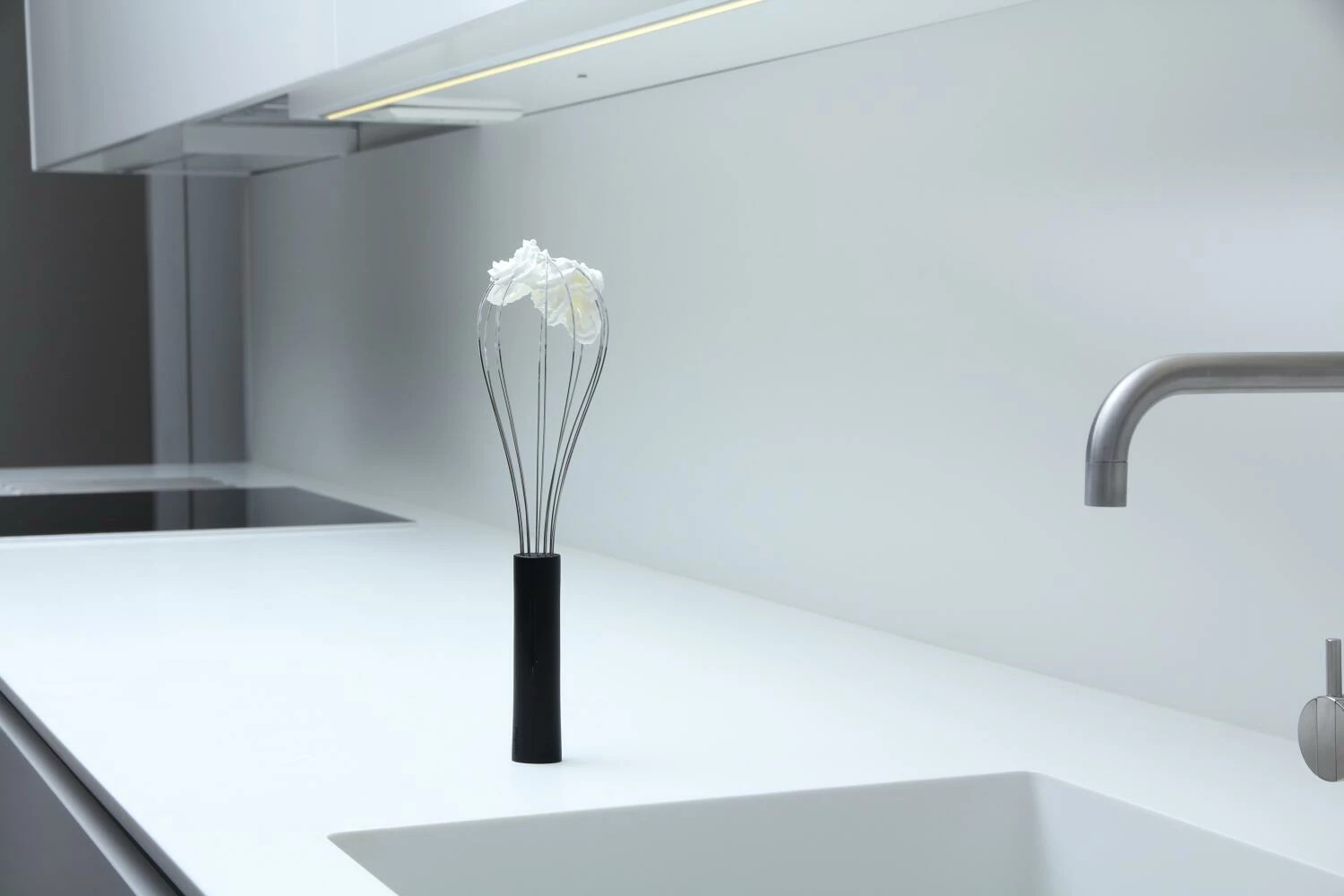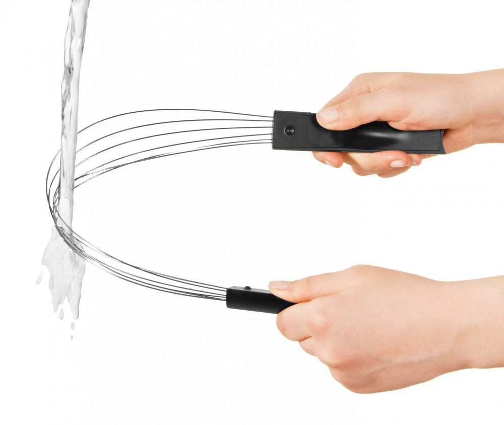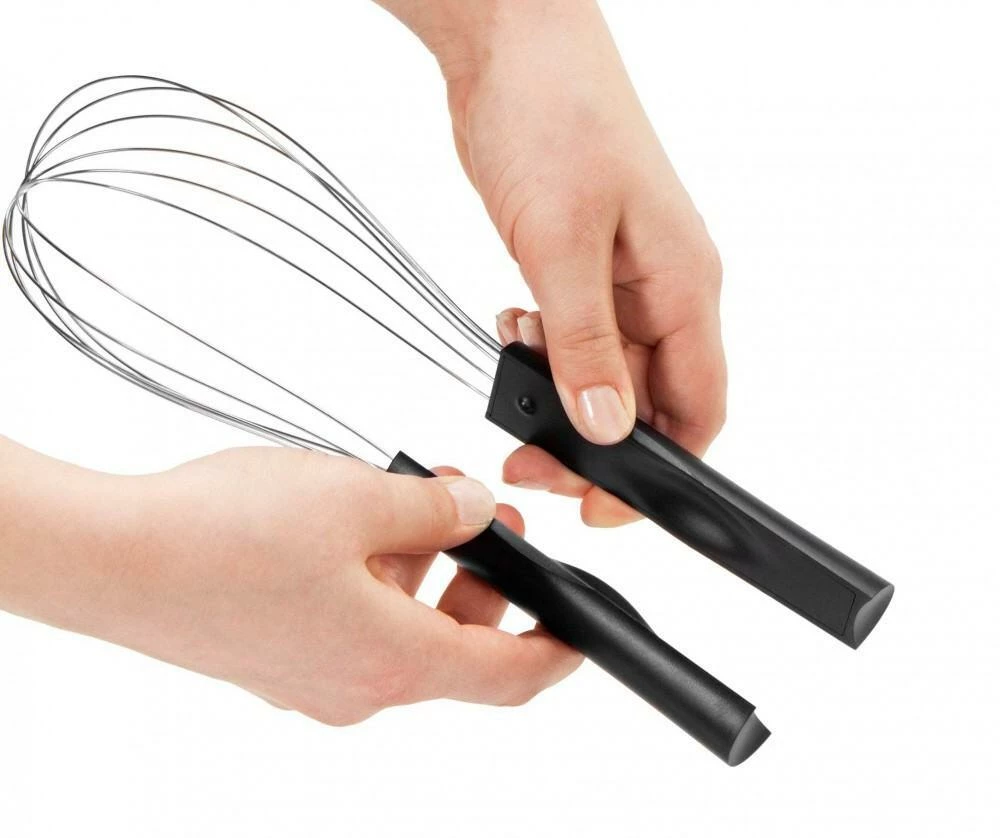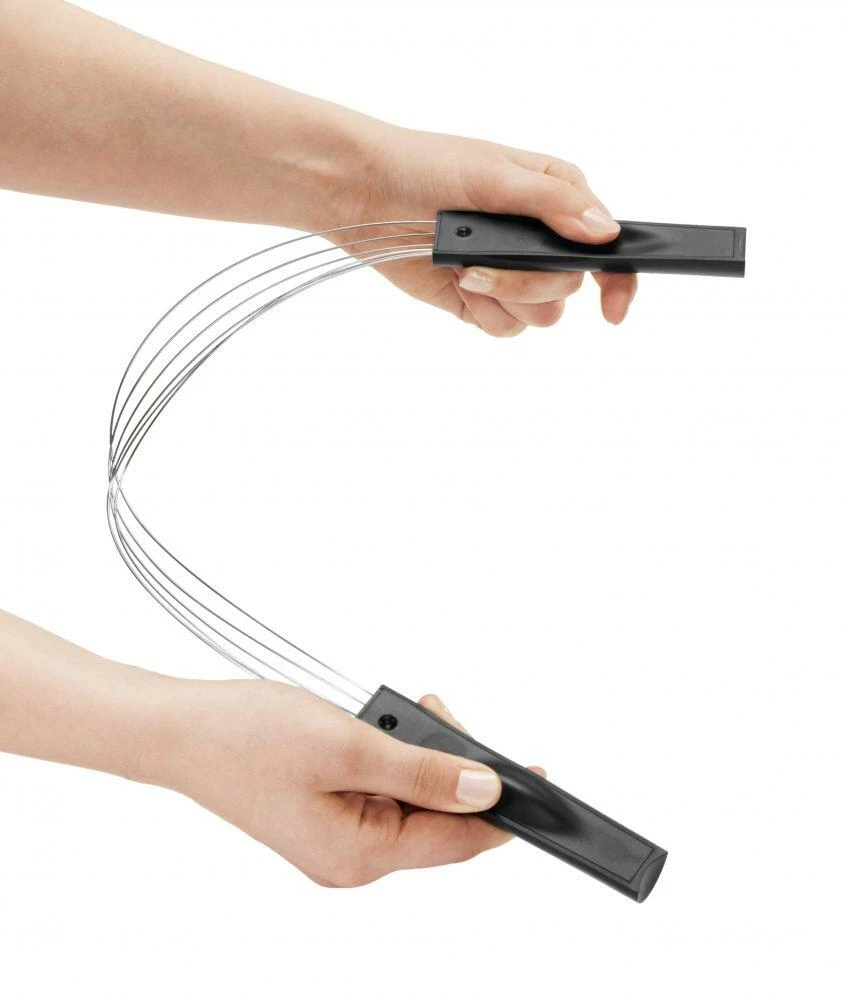 Schneebesen. Der funktionstüchtige und originelle Schneebesen wird mit Magneten zusammengehalten und kann zum Reinigen in der Mitte gespalten werden.