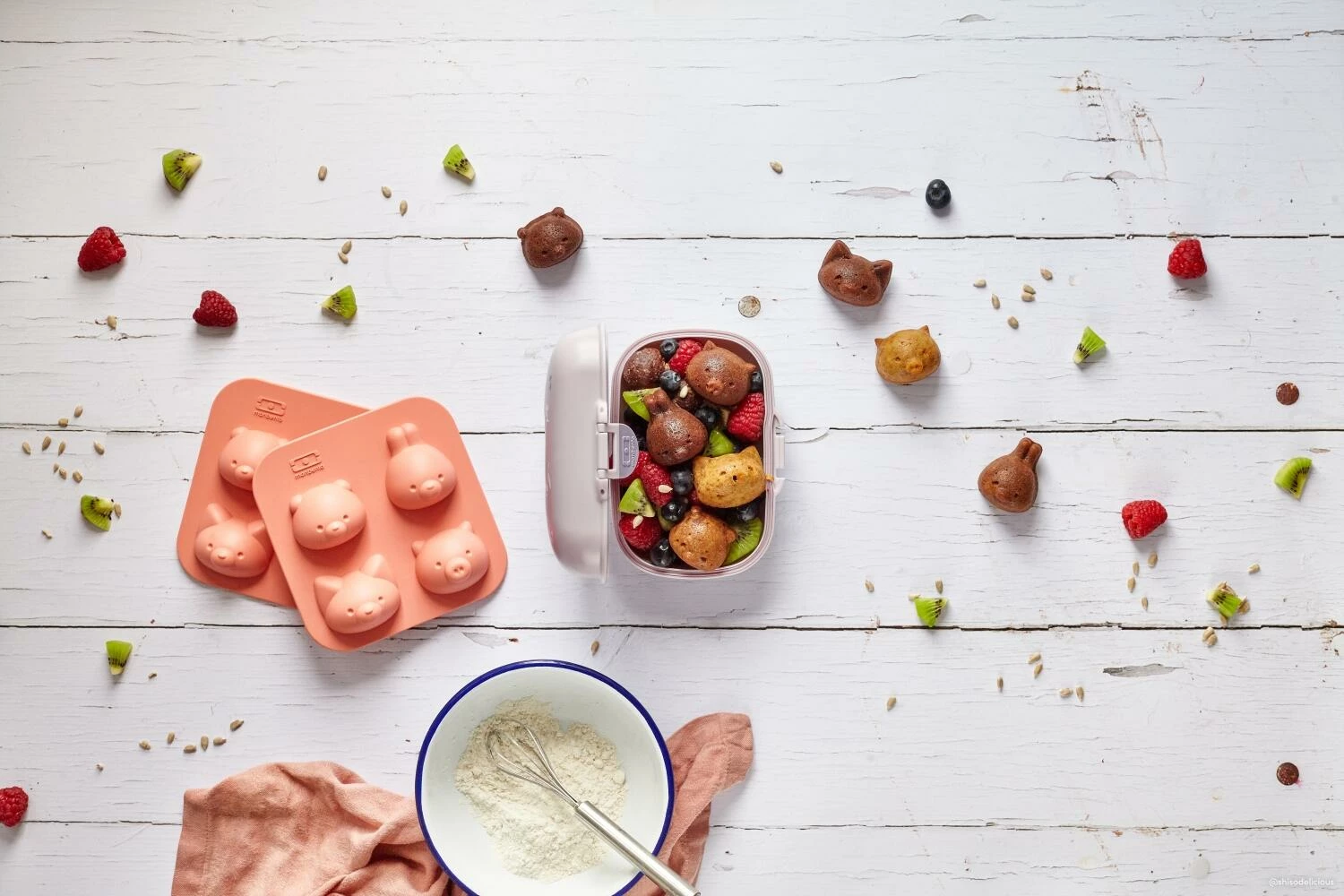 Monbento Silikonform mit Tiermotiven, 2 tlg.. Süße Backform mit 4 verschiedenen Tiermotiven für Muffins, Küchlein, Eis, Eiswürfel, Schokolade und mehr. Perfekt für den kleinen Hunger und für Naschkatzen.