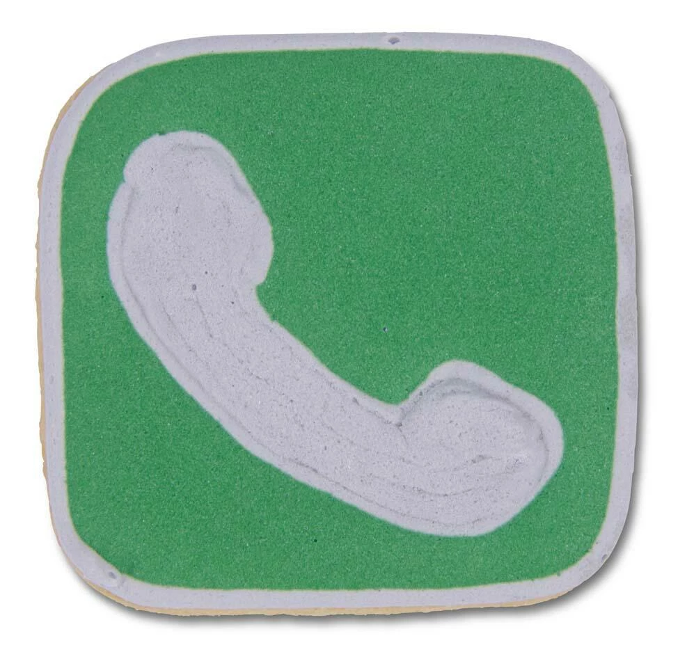 Heutzutage gibt es ja für fast alles eine Smartphone-App. Dieser Ausstecher zeigt das Anruf-Icon mit einem Telefon.
