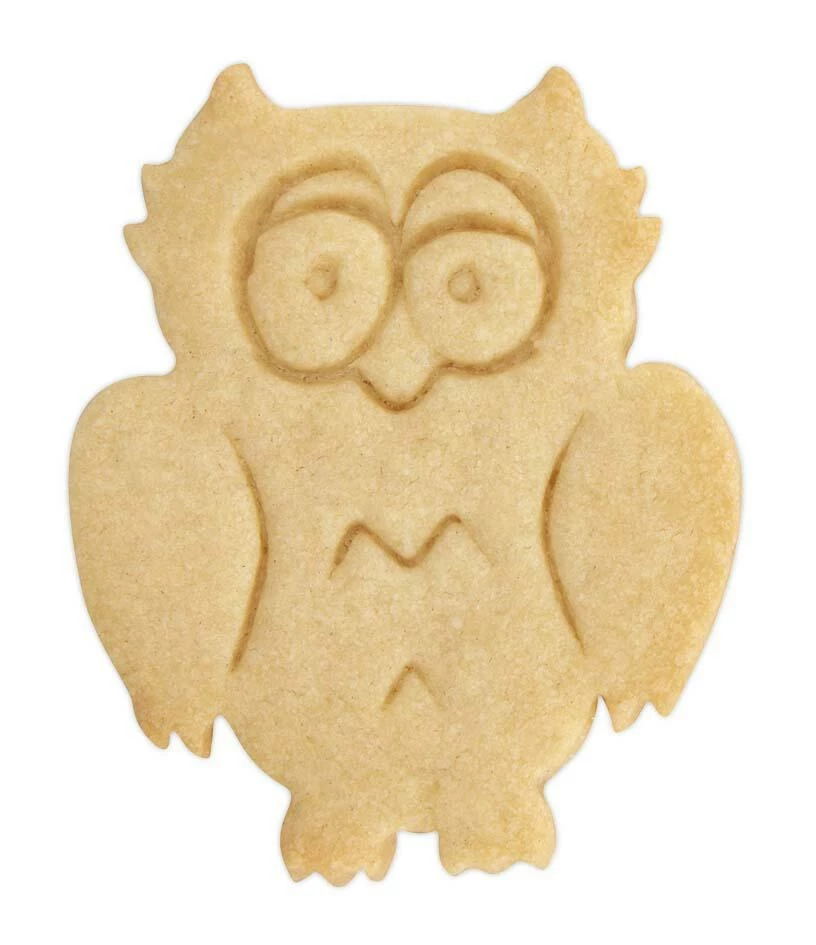 Der Präge-Ausstecher formt eine sehr hübsche Eule mit vorgeprägtem Gefieder, Schnabel, Flügeln und natürlich mit besonders großen Eulenaugen.