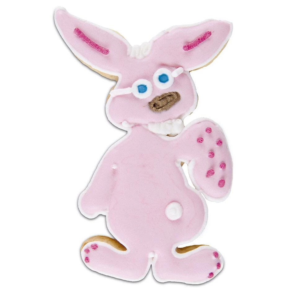 Unser Osterhase bringt sein Geschenk gleich mit: ein Osterei. Nach dem Backen können Sie den Hasen nach Herzenslust bemalen und verzieren.