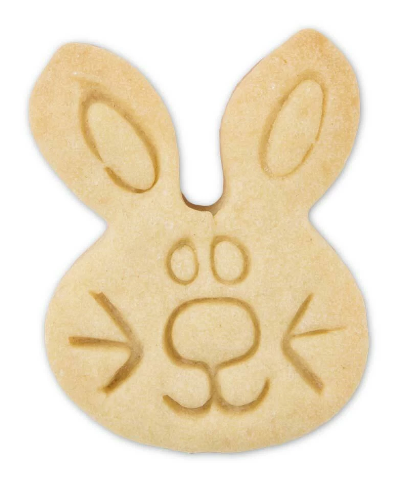 Das Hasengesicht kommt mit vorgeprägten Ohren, Augen, Stupsnase, Mund und Barthaaren. Nach dem Ausstechen kann es ganz einfach bemalt werden!