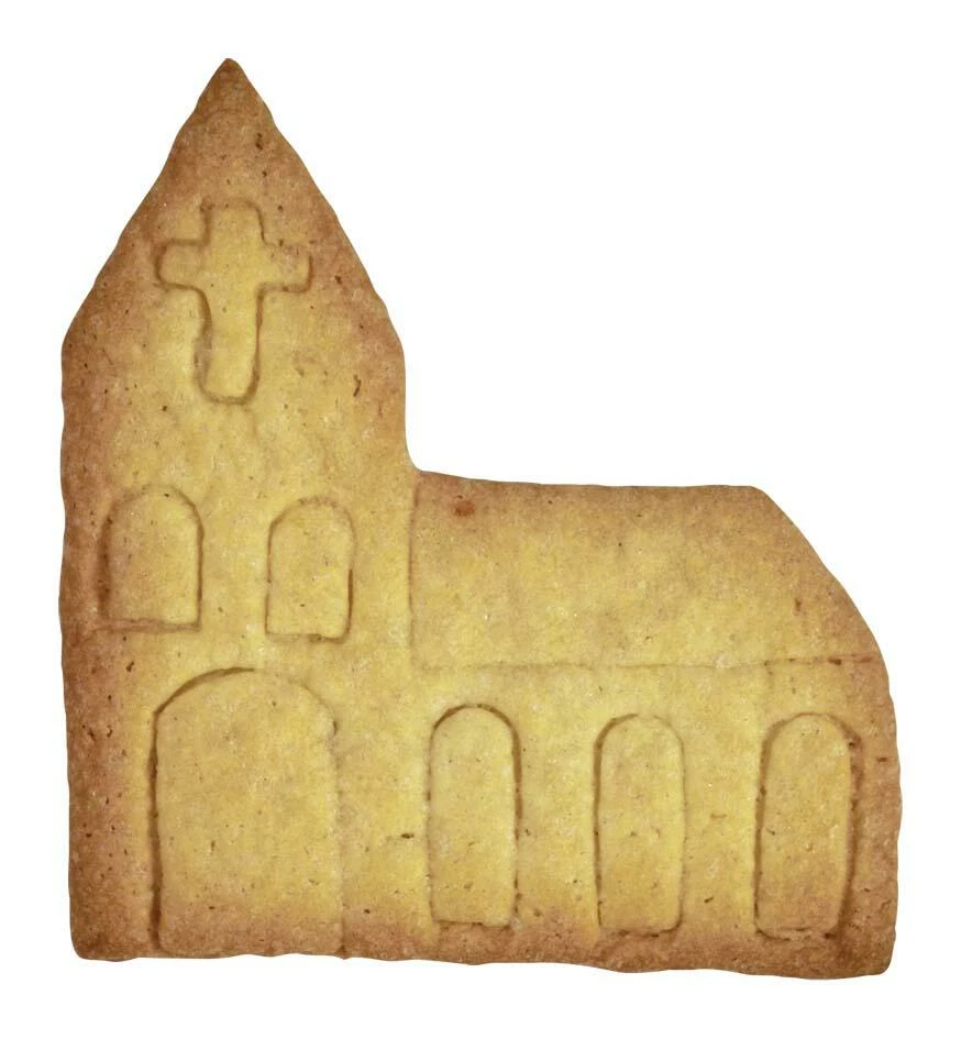 Dieser Ausstecher formt eine klassische Kirche mit Kirchturm, Schiff, Fenstern und Tür. Schönes Motiv für Taufe, Kommunion/Konfirmation und Hochzeit.