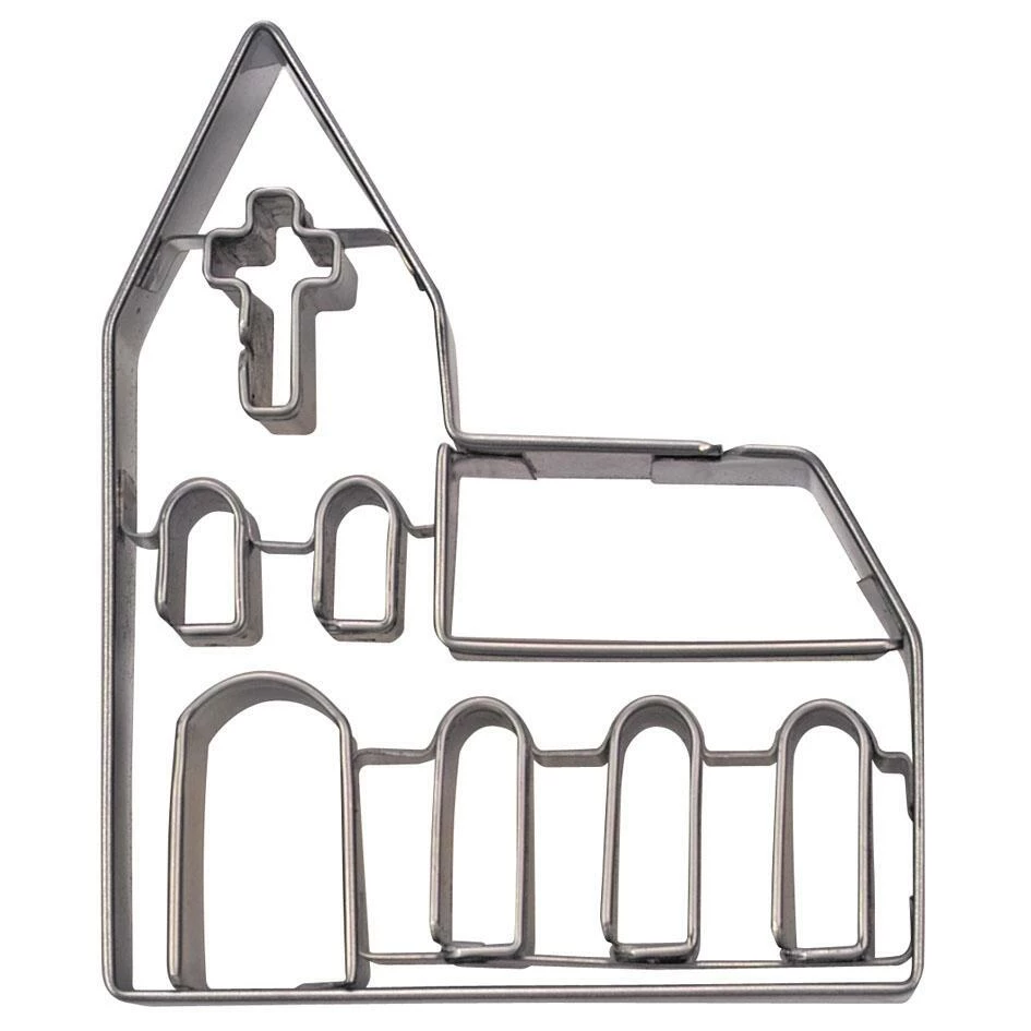 Dieser Ausstecher formt eine klassische Kirche mit Kirchturm, Schiff, Fenstern und Tür. Schönes Motiv für Taufe, Kommunion/Konfirmation und Hochzeit.