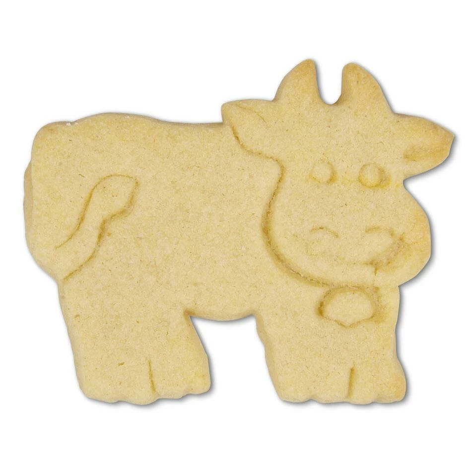 Fleckvieh zum Ausstechen: Backen Sie doch einmal eine niedliche Kuh – dank Vorprägung komplett mit Kuhschwanz, Kuhglocke und freundlichem Kuh-Lächeln.