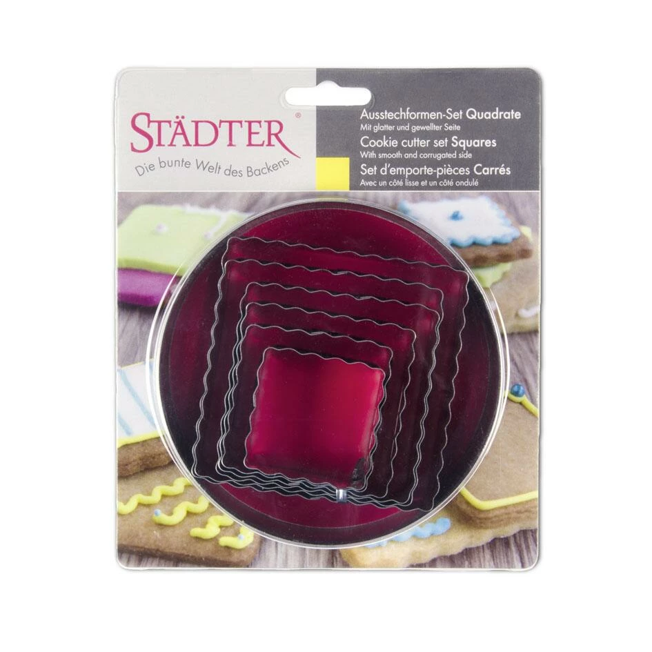 Ihr Gebäckteller soll mit Ecken und Kanten überzeugen? Dieses Ausstecher-Set mit Quadratformen in unterschiedlichen Größen gibt Ihren Keksen gleichkantigen Pepp mit vier Ecken.