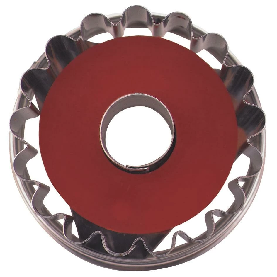 Mit dieser Ausstechform können Sie ganz einfach Ober- und Unterteil der beliebten Linzer-Plätzchen ausstechen und mit dem integrierten Auswerfer leicht und sicher auf das Backblech bringen. Zum Ausstechen des Linzer-Unterteils (und zum Reinigen) könn en Sie die Ausstechform in drei Teile (Innenteil, Außenring und Halter) zerlegen. Mit dem Außenring können Sie nun die Unterteile für die Linzer-Kekse ausstechen. Beide Teile nun backen und mit etwas Gelee, Marmelade, Zuckerguss oder Nussnougatcreme aufeinandersetzen – fertig.