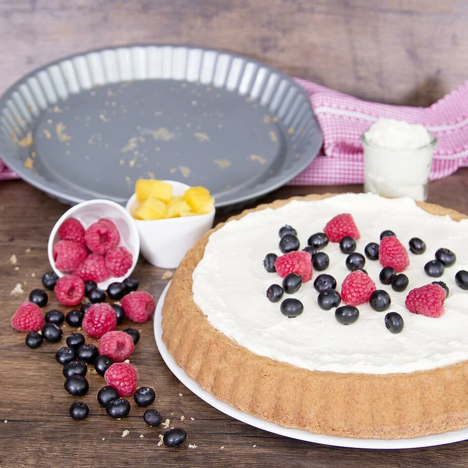 We love baking. Die Obstbodenform mit geriffeltem Rand gibt es in verschiedenen Größen. Wählen Sie nach Wunsch und Bedarf aus.