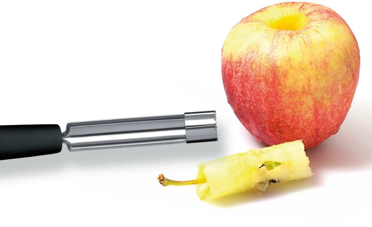 Der stabile Apfelentkerner entfernt Kerngehäuse in einem Zug. Mit 20mm Durchmesser ist er besonders für mittlere und große Äpfel geeignet. Der Griff besteht aus glasfaserverstärktem Polyamid (PA) und ist für den professionellen Gebrauch geeignet. Spülmaschinengeeignet. Hergestellt in Solingen/Deutschland.
