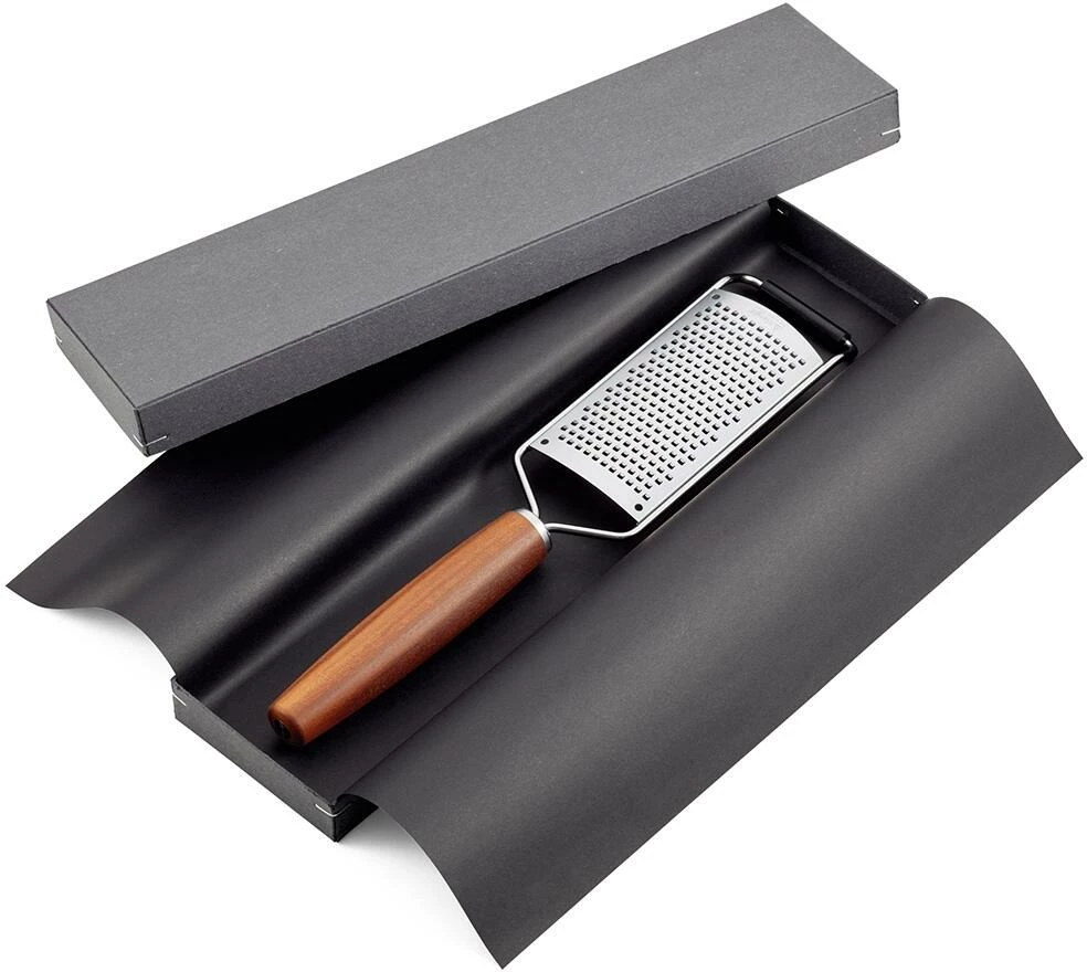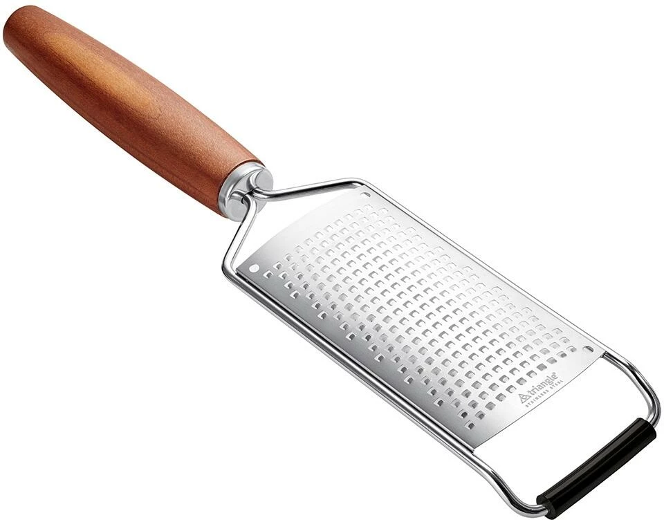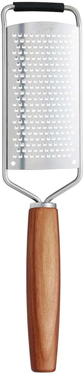 triangle regionales Pflaumenholz und unterstützt damit eine nachhaltige Holzwirtschaft und kurze Transportwege. Die Griffe werden im Sauerland gedrechselt, anschließend in Solingen fein bearbeitet und mit Funktionsteilen aus Edelstahl konfektioniert. Gefertigt wird selbstverständlich mit Ökostrom. Die Lieferung erfolgt in einer stilvollen und nachhaltigen Geschenkbox. Tipp: Gibt man weicheren Käse, wie z.B. jungen Gouda, vor dem Reiben kurz in das Tiefkühlfach geben, lässt er sich zügiger verarbeiten.