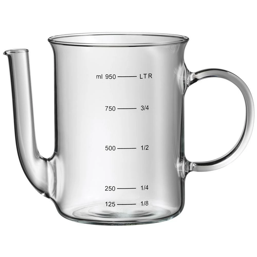 WMF Fettreduzierkanne. Damit kriegen Sie Ihr Fett weg! Einfach die heiße Suppe, Sauce oder Bratenfond in die Kanne gießen und abwarten, bis das Öl/Fett oben schwimmt. Dann langsam die fettfreie Flüssigkeit abgießen. Durch die praktische Skalierung bis 750 ml können Sie Flüssigkeiten abmessen. Das feuerfeste Glas kann auch in der Spülmaschine gereinigt werden.